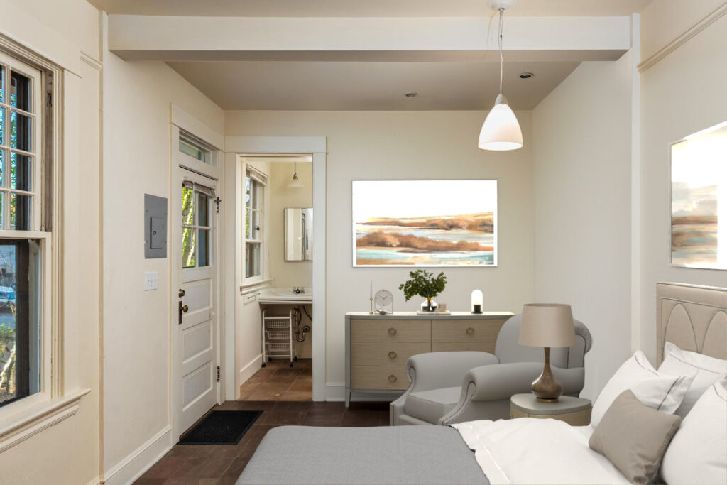 Introducing one of the most intriguing homes in highly sought after Hawthorne district delivering pure Craftsman details, zen-like energy, and a floor plan highly adaptable to your present and long-term needs and desires. Unbeatable location adjacent to endless local amenities including cafes, pubs, coffee, restaurants, markets, parks, schools, library, bike routes, bus stops, and much more. Walkscore.com ranks this address as car-free "paradise" for convenient living on foot or bike. Interior features offer formal Craftsman living room and dining room chock full of exquisite built-ins, wainscoting, plate rail, pocket doors, fireplace, and high ceilings all filled with golden natural light which pours through many windows. The second floor has two large ensuites one of which serves as the primary bedroom w/ two walk-in closets and a relaxing sitting area. The top floor flexes perfectly as another bedroom, office, yoga, or media room. The newly remodeled, eat-in kitchen was thoughtfully designed and is ideal for entertaining and cooking w/ a highly efficient use of space, loads of cabinetry, built-ins, and stainless steel appliances. Also located on the main floor is a separate guest quarters w/ outside entrance that has recently rented (long term) for $1150/mo. This home offers options for supplemental income, multi-generational living, work from home, or house share. There are several separate living areas yet the house works perfectly as one abode. The lower level area includes a workshop, generous storage, a bright laundry station w/ folding table, and a finished studio for art or fitness. Southwest facing corner lot w/ a variety of mature fruit trees, a 30 ft. black bamboo grove flanking a Japanese inspired Summer shade garden, and large deciduous trees give ample Summer shade but let precious winter light in. This home has been beautifully cared for by its long-term owner and is ready for you to make it your own just in time for Summer!