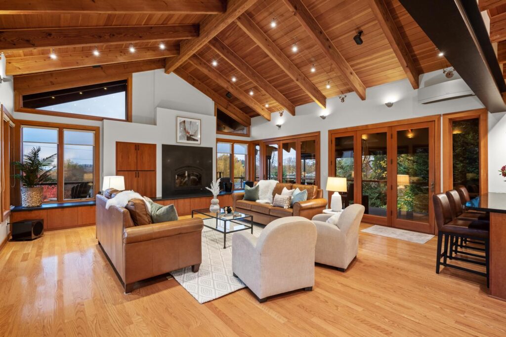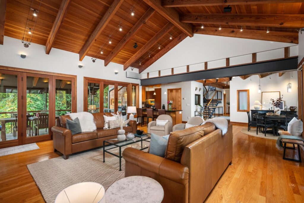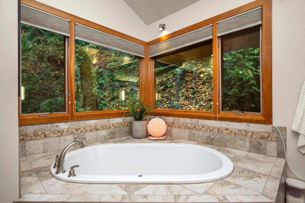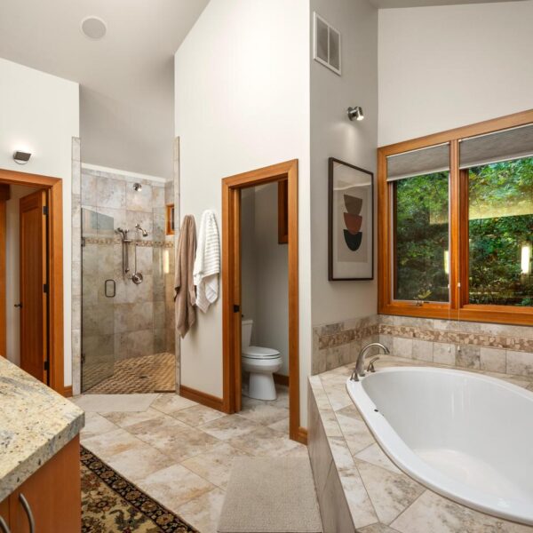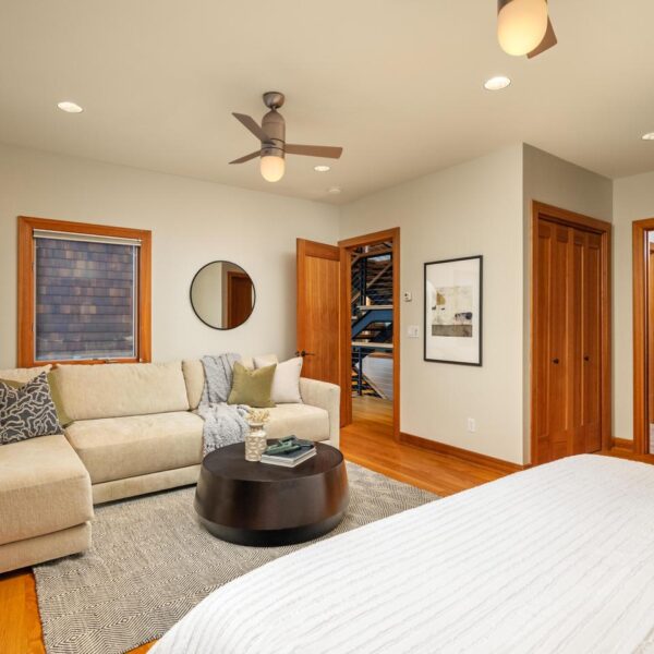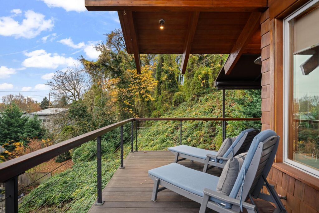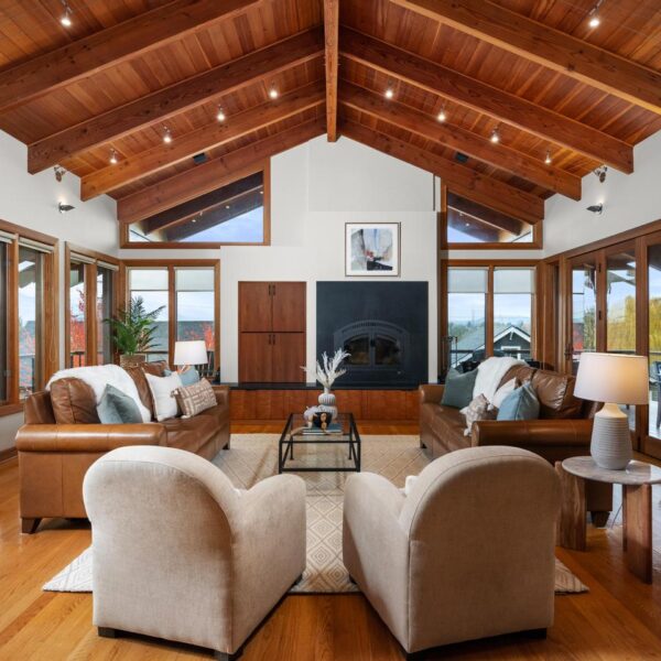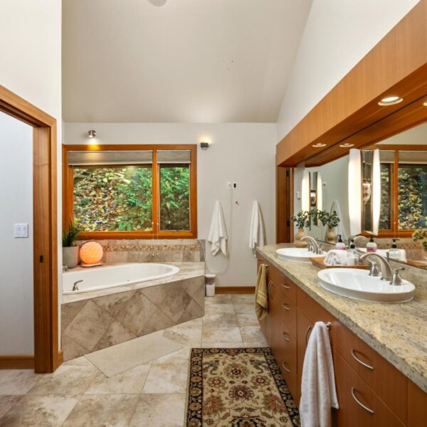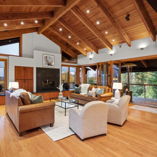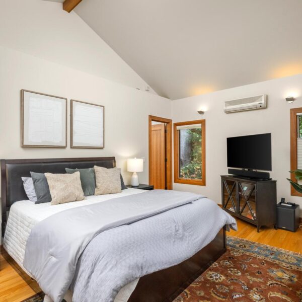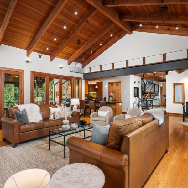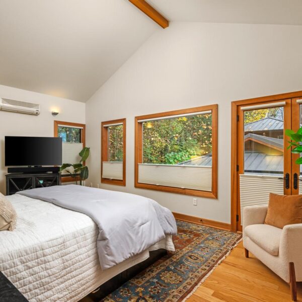 Unwind in the luxurious primary retreat, your own private escape at the end of the day. Outside, an expansive covered deck invites year-round enjoyment of the Pacific Northwest’s natural beauty.