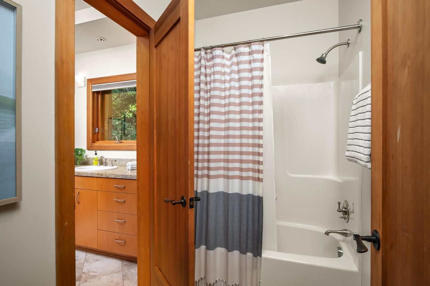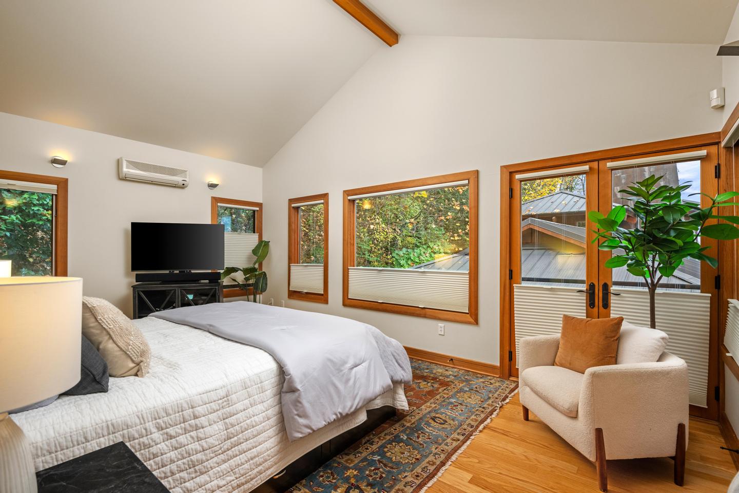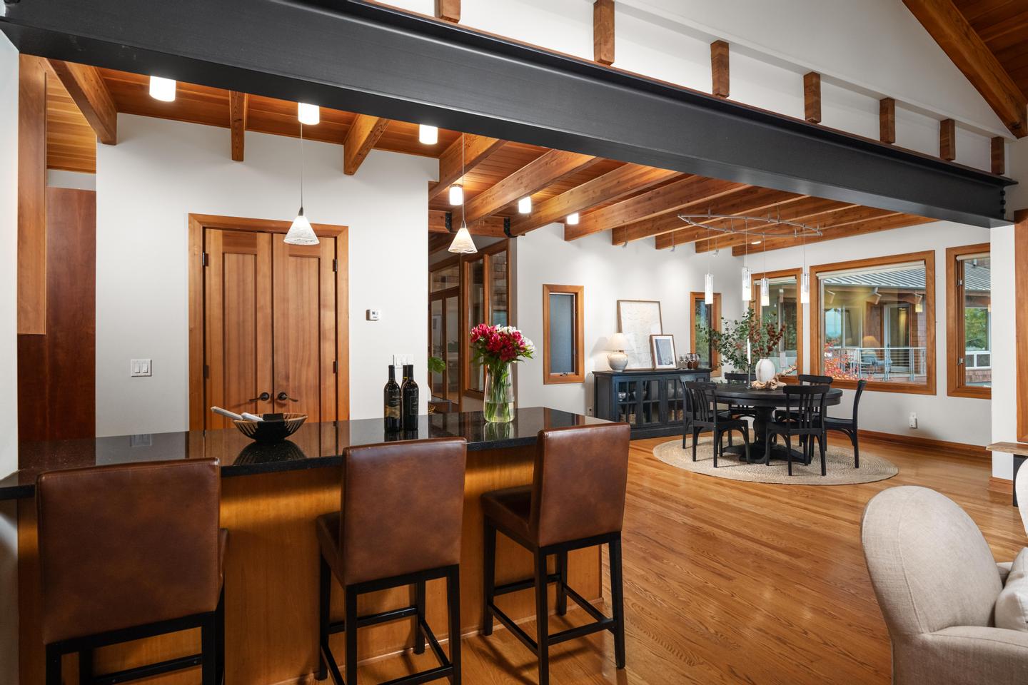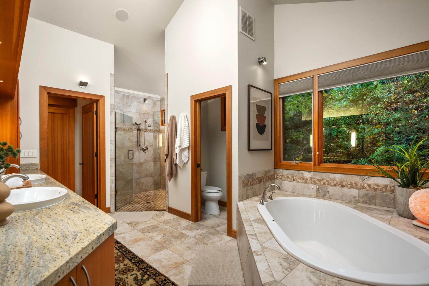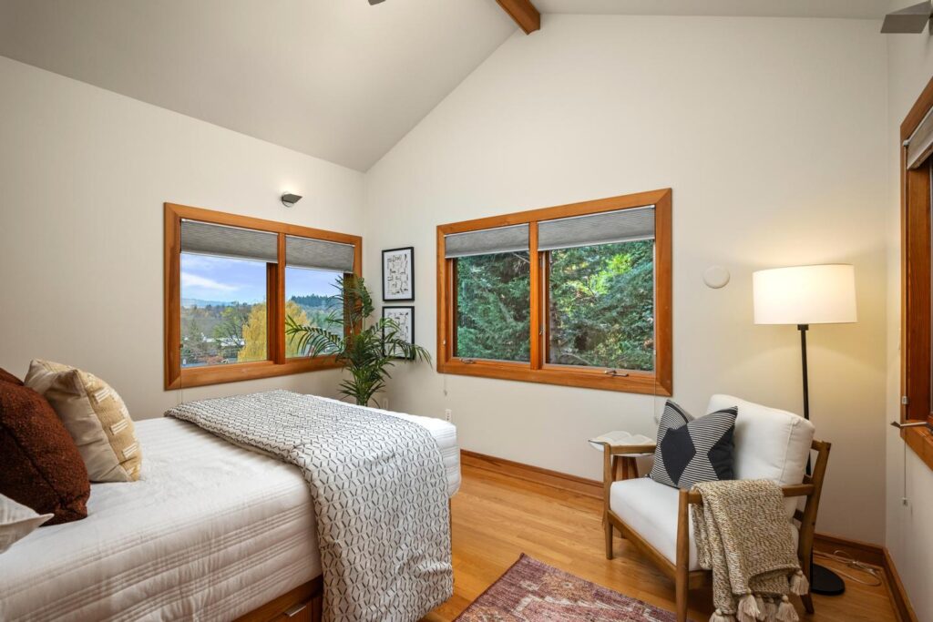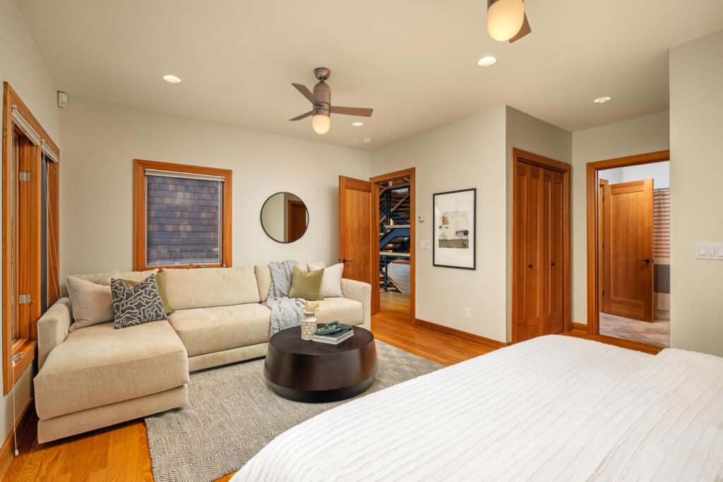 Unwind in the luxurious primary retreat, your own private escape at the end of the day. Outside, an expansive covered deck invites year-round enjoyment of the Pacific Northwest’s natural beauty.