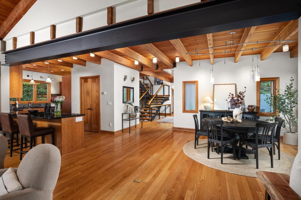Discover this custom-built contemporary masterpiece, perfectly perched to capture sweeping views in one of Portland’s most sought-after neighborhoods. This architecturally striking home blends modern industrial flair with warm craftsman detailing, creating a vibe that’s both stylish and welcoming.