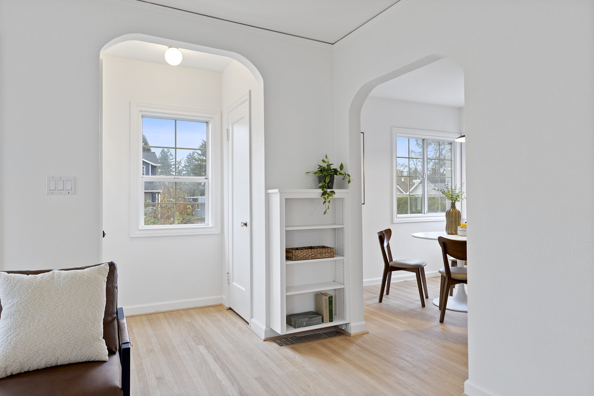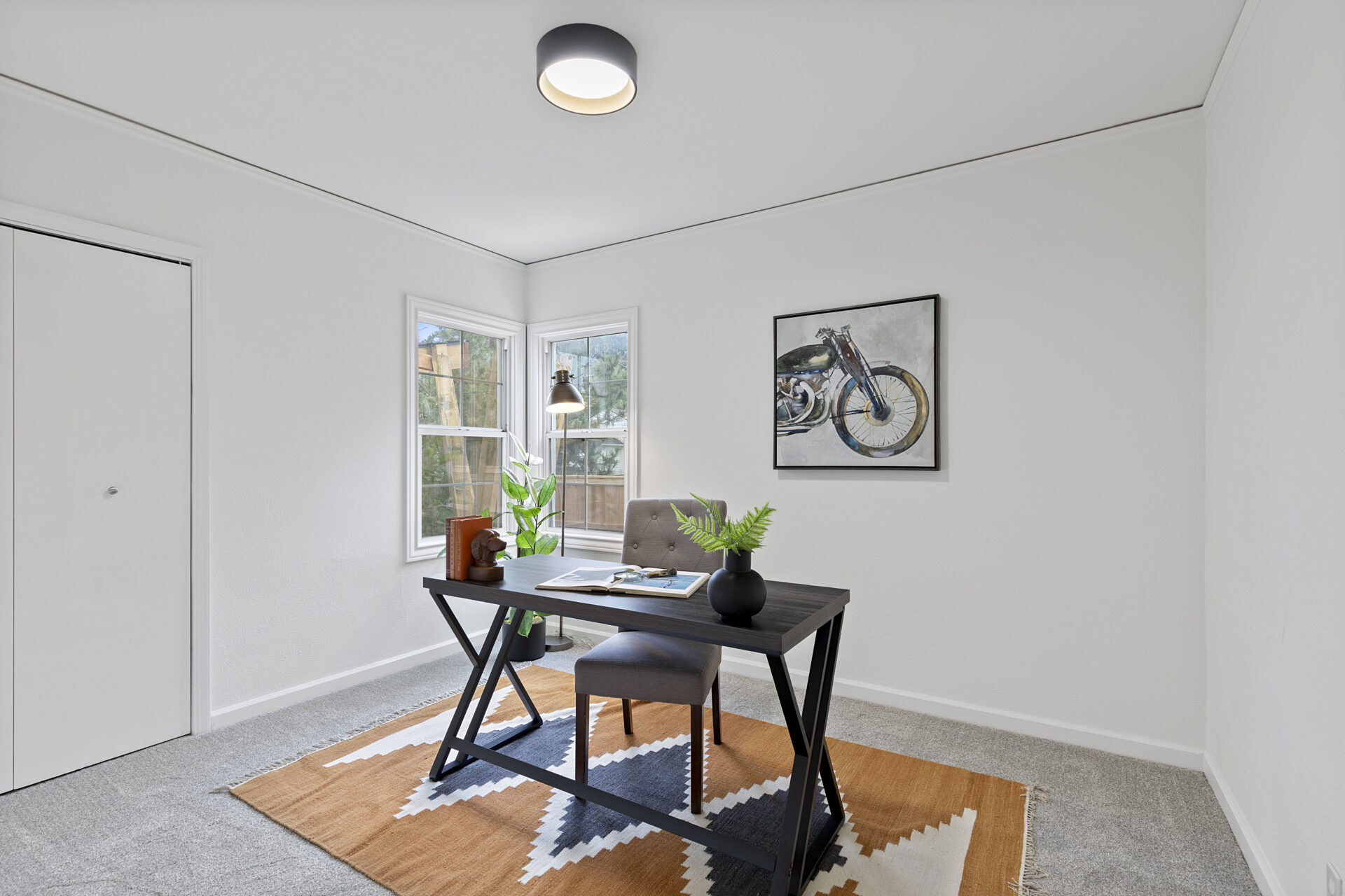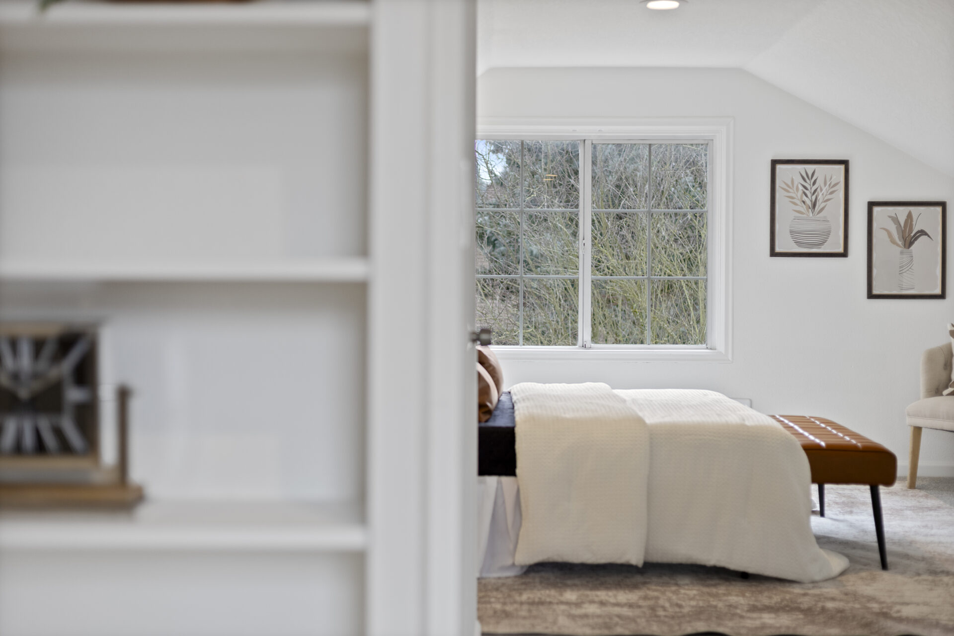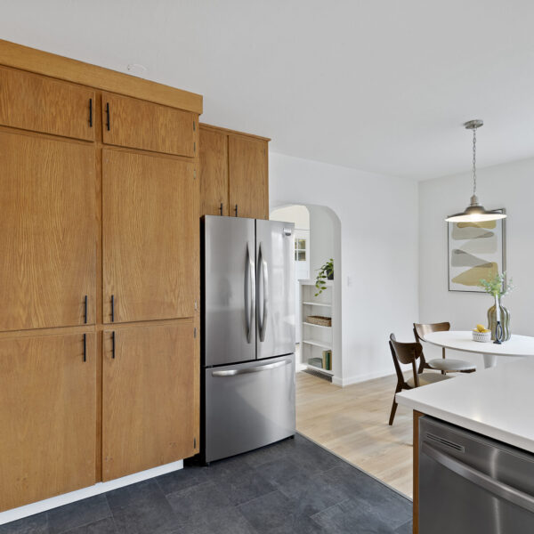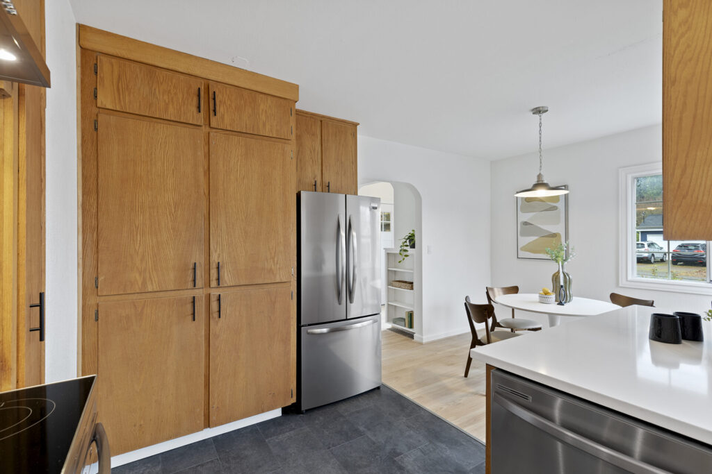 A Classic Cape Cod Cottage blends timeless character with practical updates in a peaceful, tree-lined setting. The main level features a bright, functional layout with refinished hardwood floors, two comfortable bedrooms with new carpet, and an updated full bath. The refreshed kitchen and dining nook, drenched in natural light, shines with new quartz counters, updated flooring, and new appliances. Upstairs, a spacious en-suite primary with large walk-in closet offers flexibility for sleeping and/or office. The spacious basement with generous ceiling height provides excellent storage and potential for expanded living space. Outside, mature landscaping, off-street parking, and a private fenced yard complete this inviting home. Ideally located in close proximity to parks, schools, and neighborhood amenities. Recent improvements include a newer roof and A/C, new furnace, and fresh exterior paint.