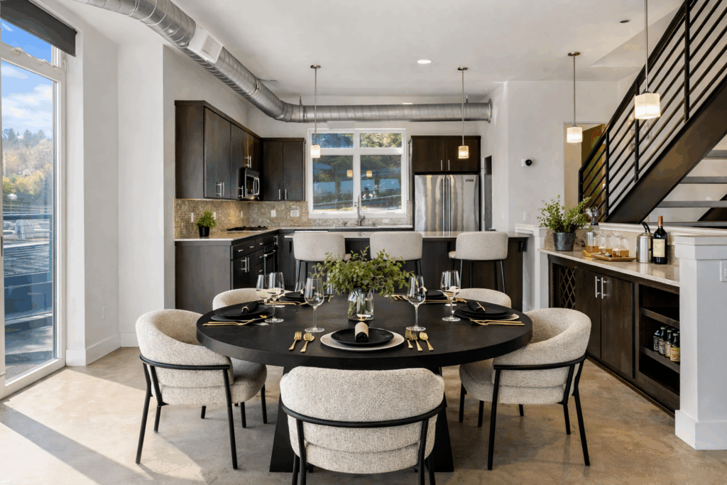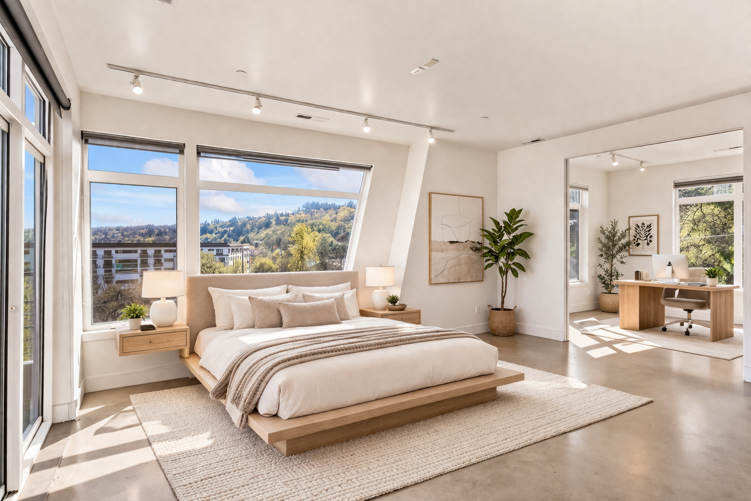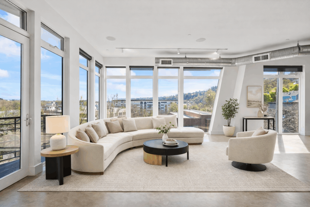 Luxury 3-bedroom, 3.5-bath townhome above the Willamette River with over 2,000 sq ft, floor-to-ceiling windows, and stunning river and Mount Hood views. Features premium appliances, a marble primary suite, loft/office space, two balconies, wet bar, built-in audio, gas fireplace, and 2-car garage. Walkable to OHSU, streetcar, parks, trails, and Zupan’s, with a yacht slip available nearby.