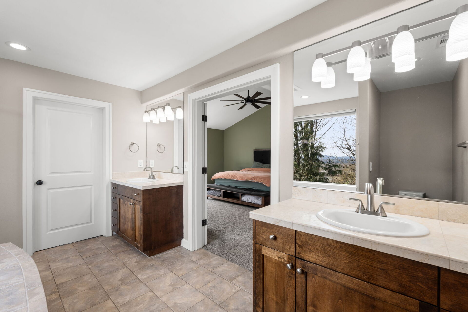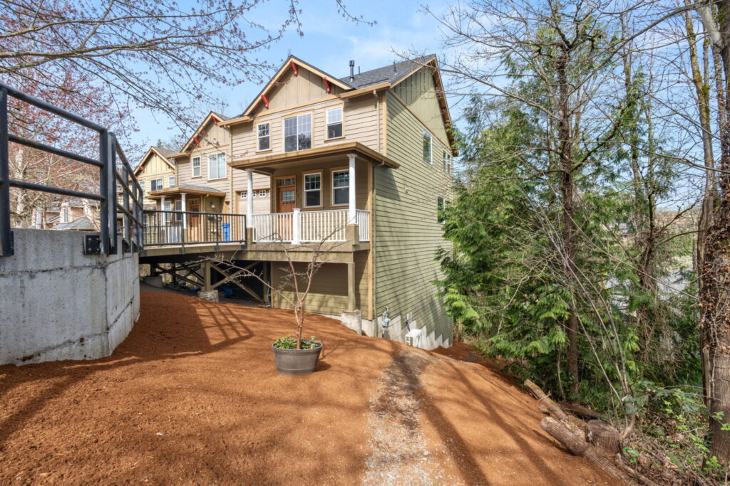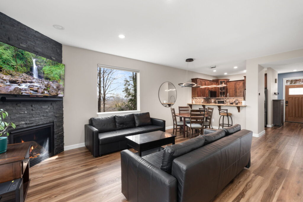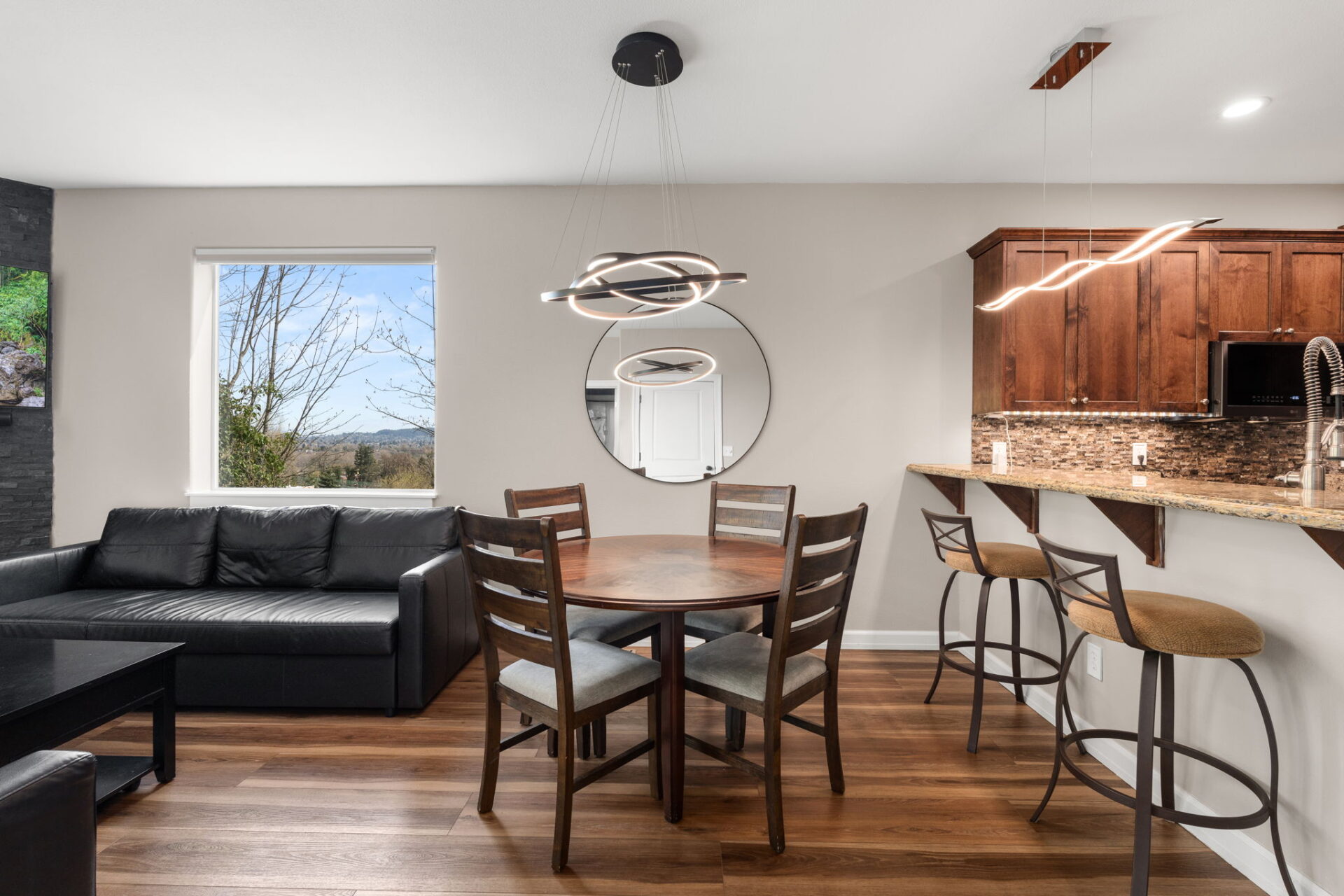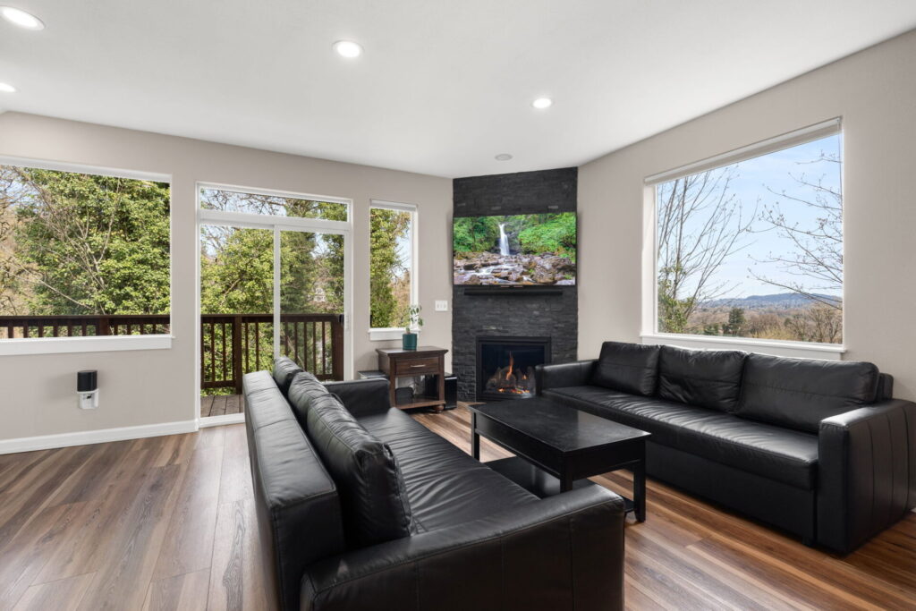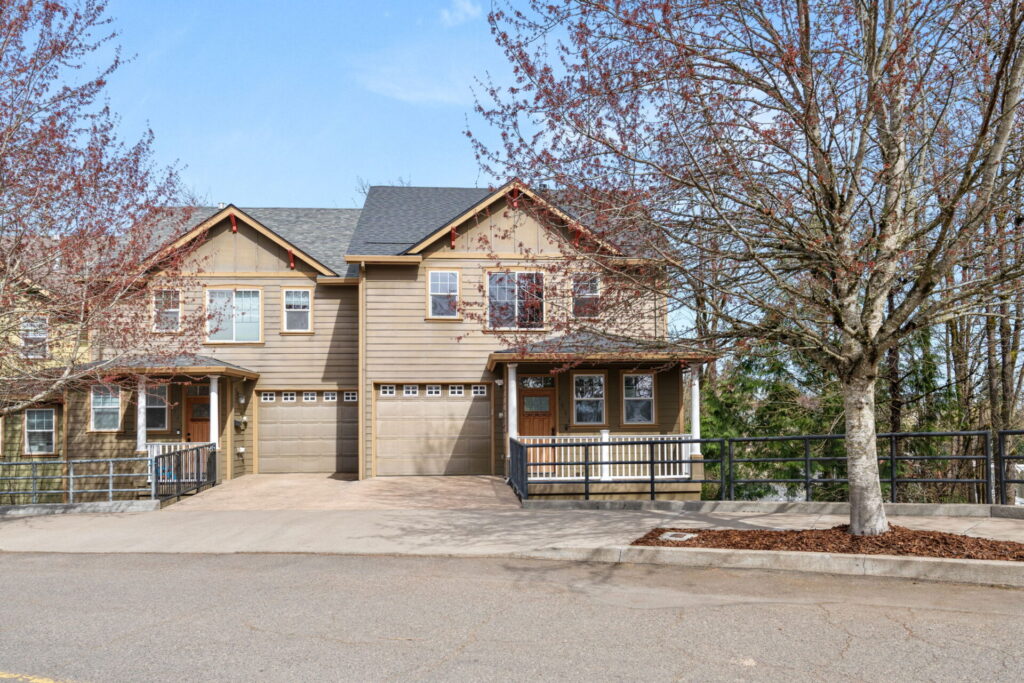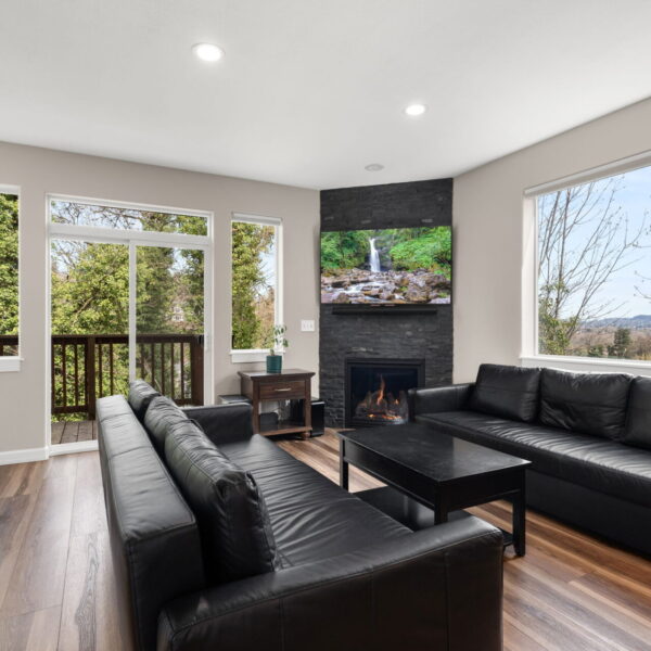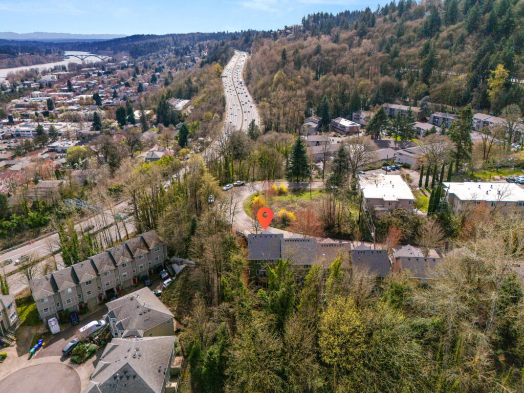 Updated end-unit townhome filled with natural light, offering seasonal Mt. Hood and Willamette River views, a well-executed multi-level layout, open main-floor living, and meaningful recent system improvements. Well-appointed kitchen with newer stainless steel appliances opens to the living area with a refreshed gas fireplace and direct access to a generous deck overlooking a wooded seasonal backdrop. Vaulted en-suite primary on the upper level includes adjoining flex space and a spacious bath with dual vanities, soaking tub, separate shower, and walk-in closet. Lower-level bedrooms offer comfortable separation and privacy with a shared bath. Dedicated mechanical room provides excellent additional storage potential.