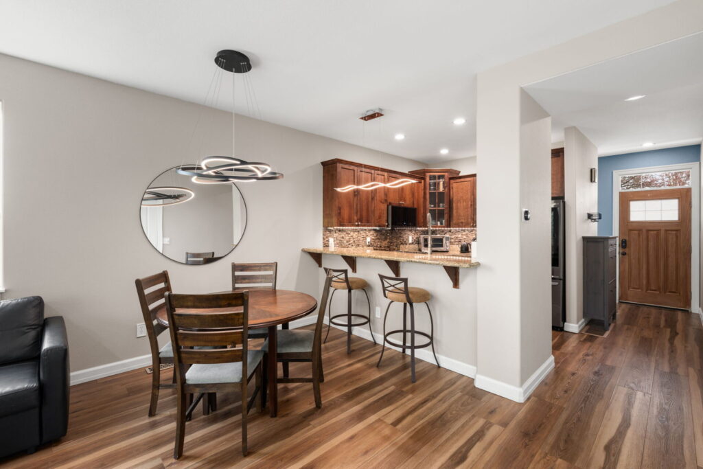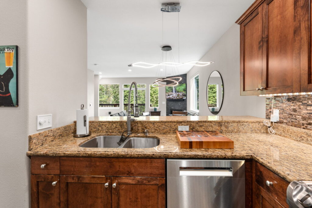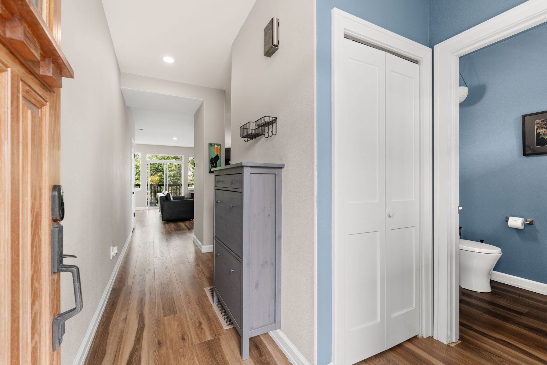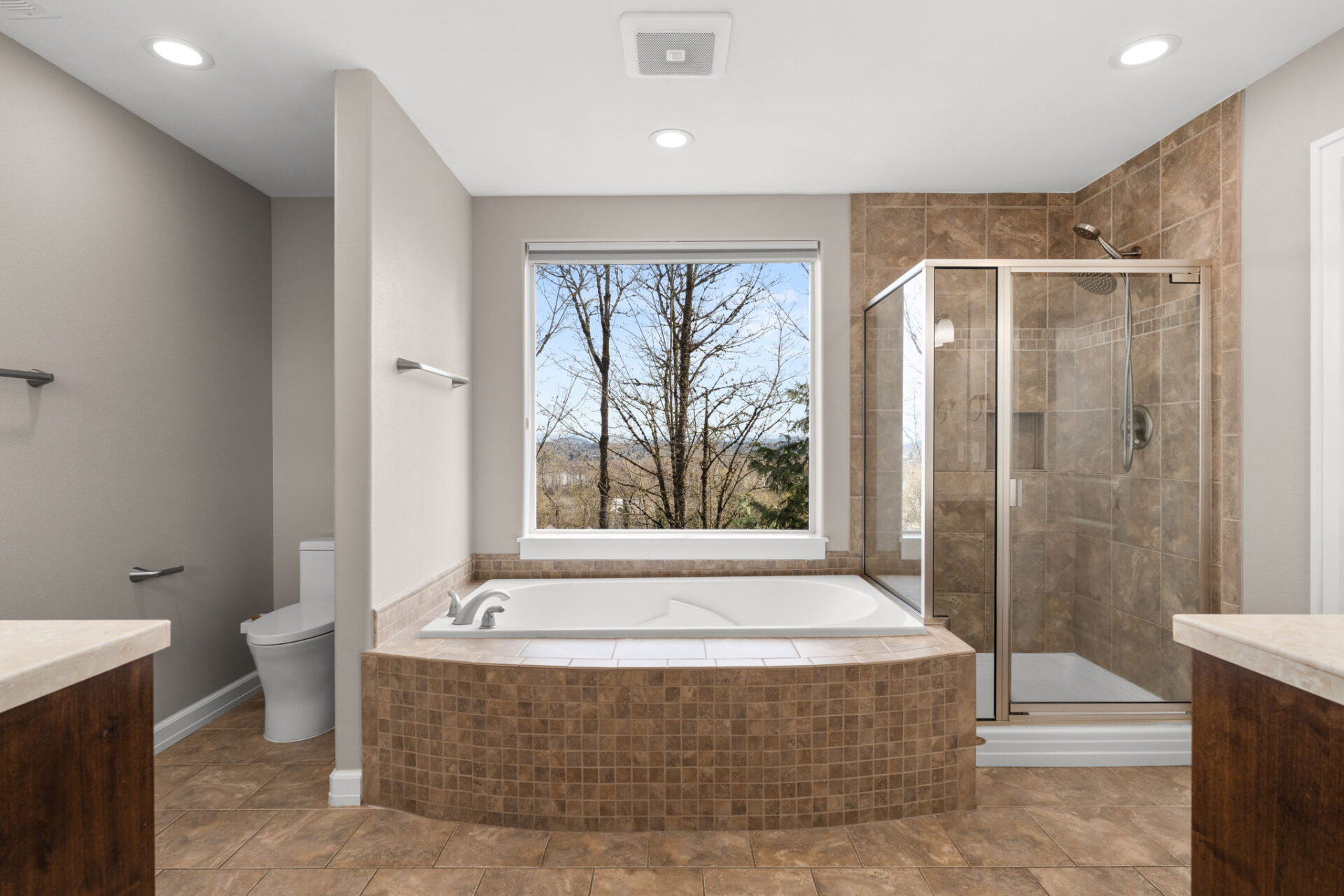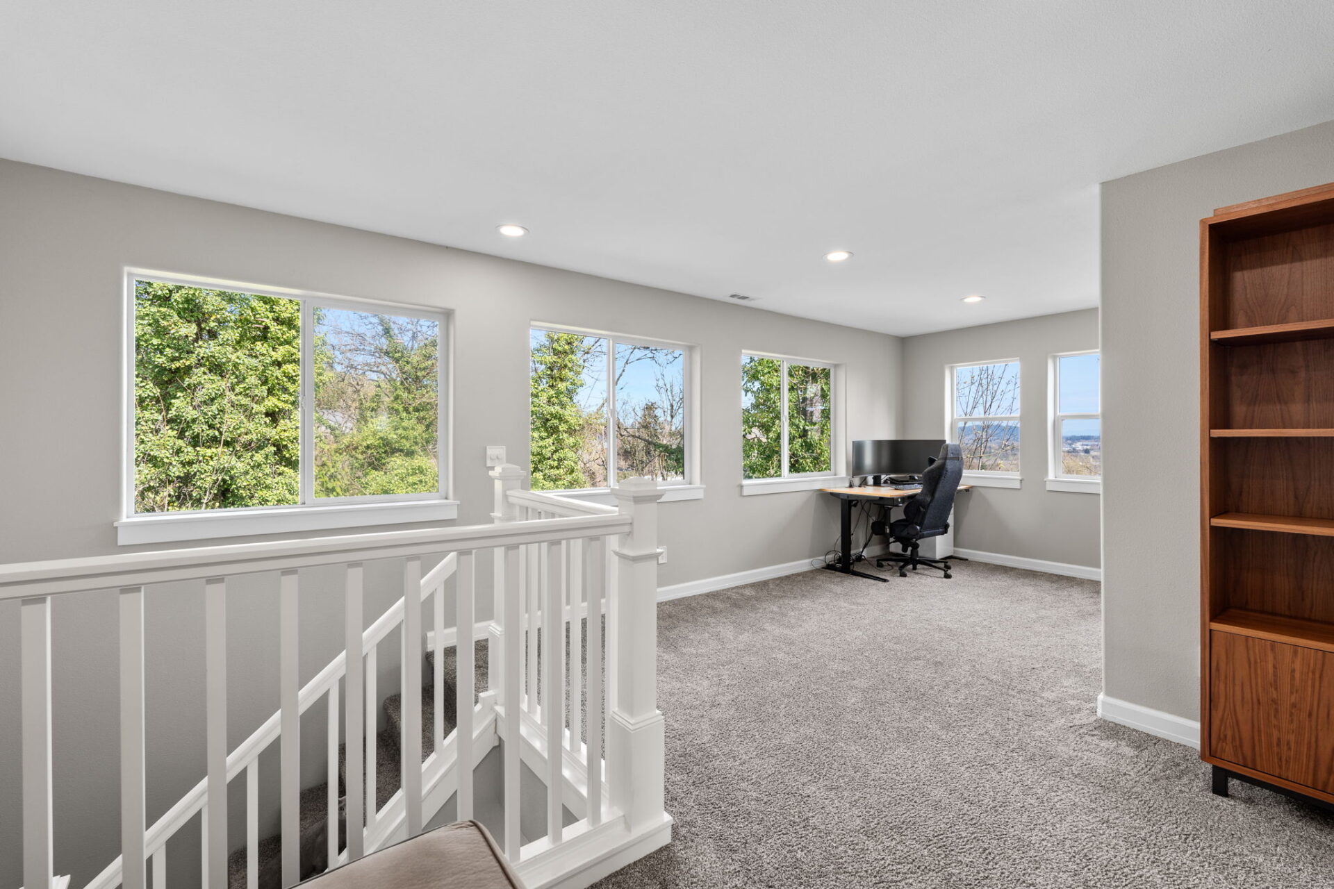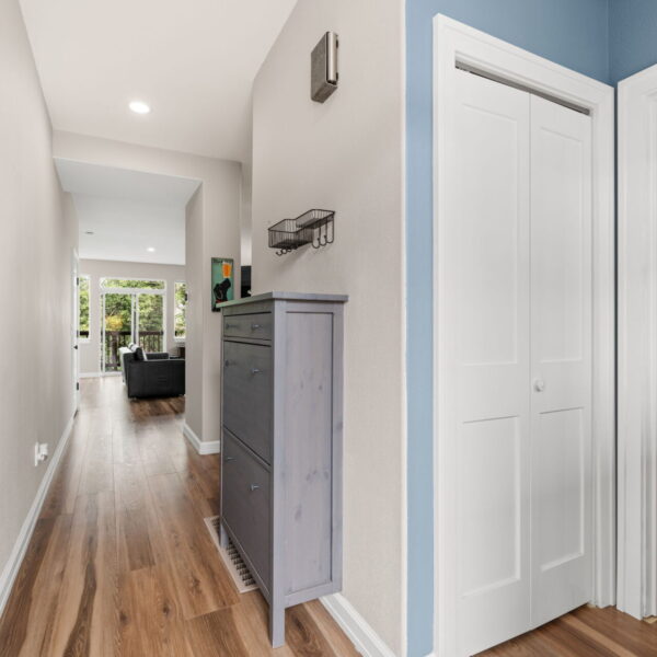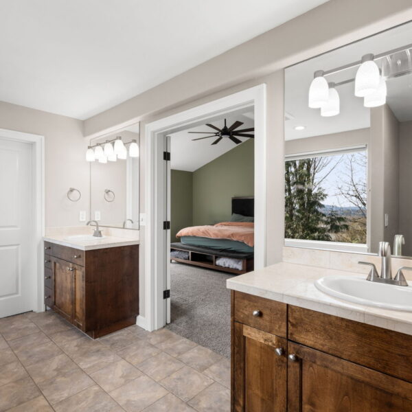 Updated end-unit townhome filled with natural light, offering seasonal Mt. Hood and Willamette River views, a well-executed multi-level layout, open main-floor living, and meaningful recent system improvements. Well-appointed kitchen with newer stainless steel appliances opens to the living area with a refreshed gas fireplace and direct access to a generous deck overlooking a wooded seasonal backdrop. Vaulted en-suite primary on the upper level includes adjoining flex space and a spacious bath with dual vanities, soaking tub, separate shower, and walk-in closet. Lower-level bedrooms offer comfortable separation and privacy with a shared bath. Dedicated mechanical room provides excellent additional storage potential.